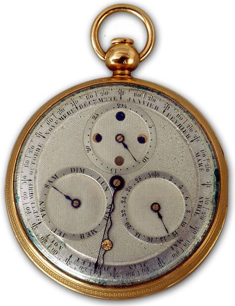 Toute à son image, la montre du général Junot n'est pas commune. Elle est une petite merveille d'horlogerie. Elle comprend un premier cadran en or avec un compteur pour les secondes à gauche, un compteur hémisphérique à droite pour la réserve de marche. Le second cadran en platine propose trois compteurs indiquant la phase de lune, le jour du mois et le jour de la semaine. Cette montre se transforme en horloge lorsqu'elle est placée à l'intérieur d'un cabinet en métal doré à motifs avec une ouverture centrale circulaire correspondant au cadran de la montre.