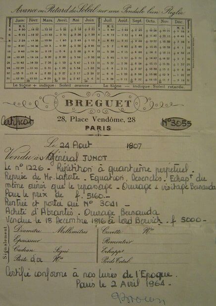 La duchesse d'Abrantès revendit la montre en 1813 à Breguet. qui la revendit à son tour en 1816 à un Anglais nommé Berwick. Ce dernier en fit cadeau à son ami Rowland Hill.